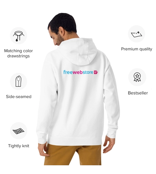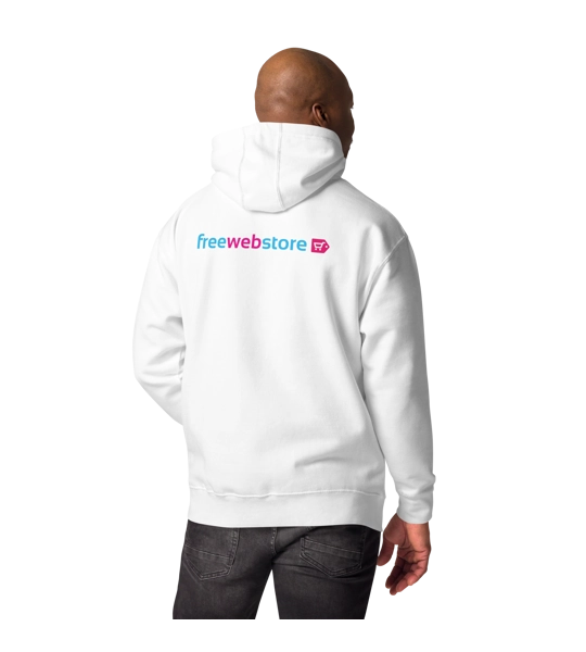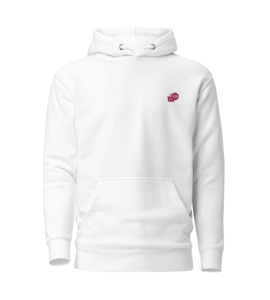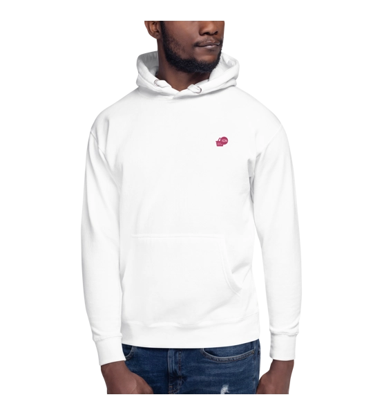 Classic white unisex hoodie with a front pouch pocket and matching flat drawstrings. The 100% cotton exterior makes this hoodie soft to the touch.